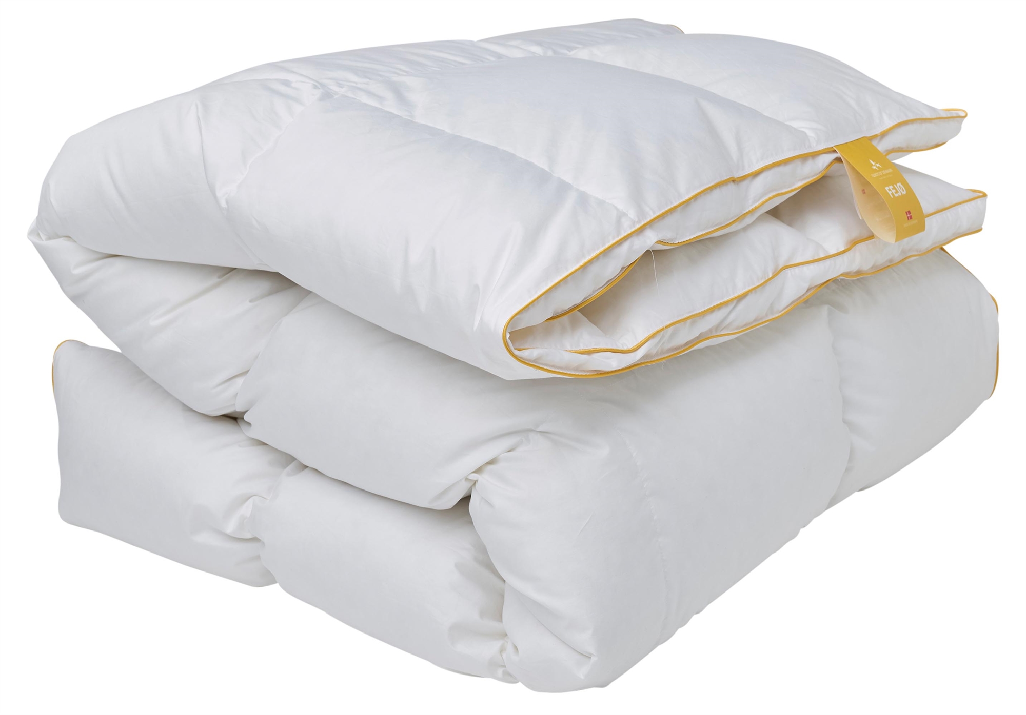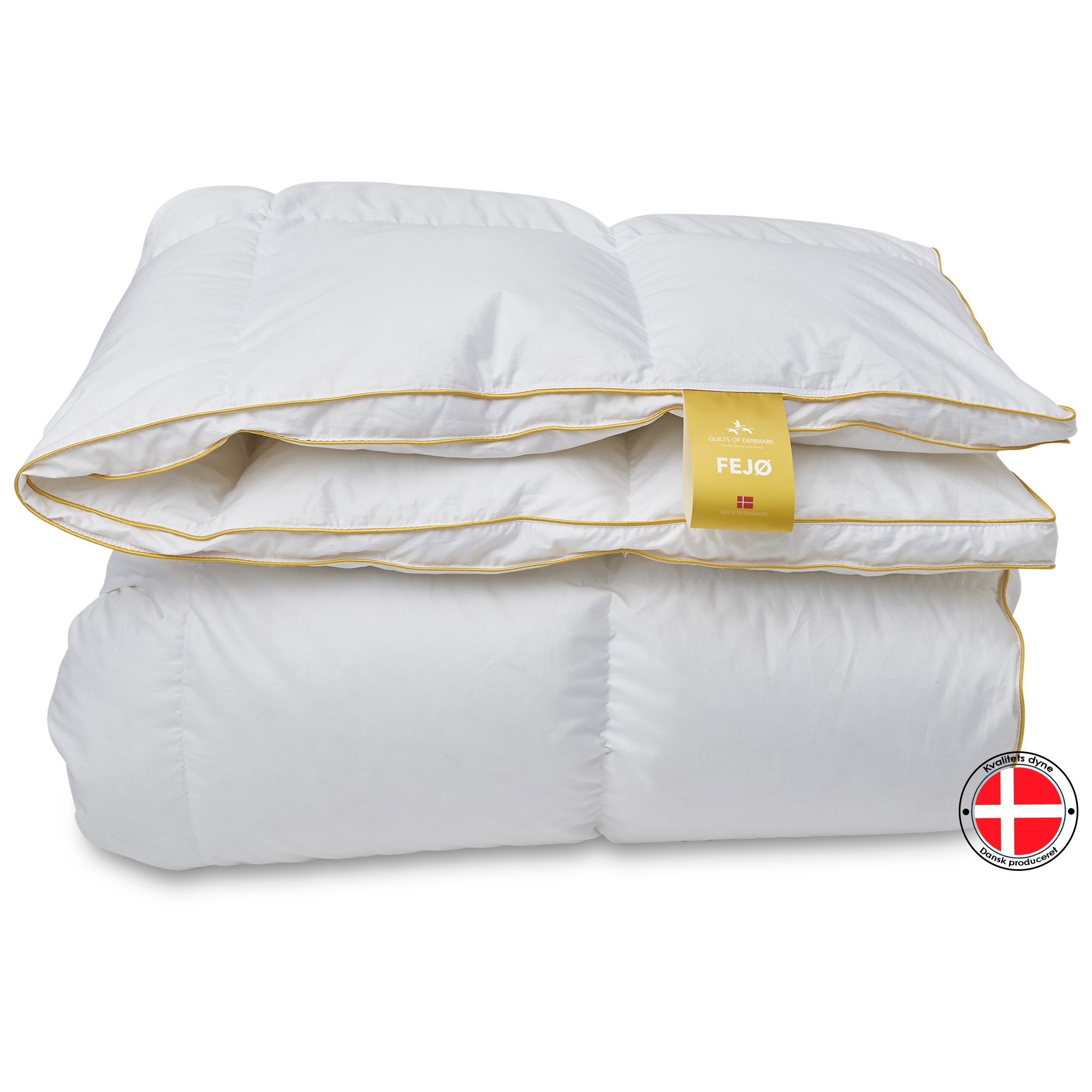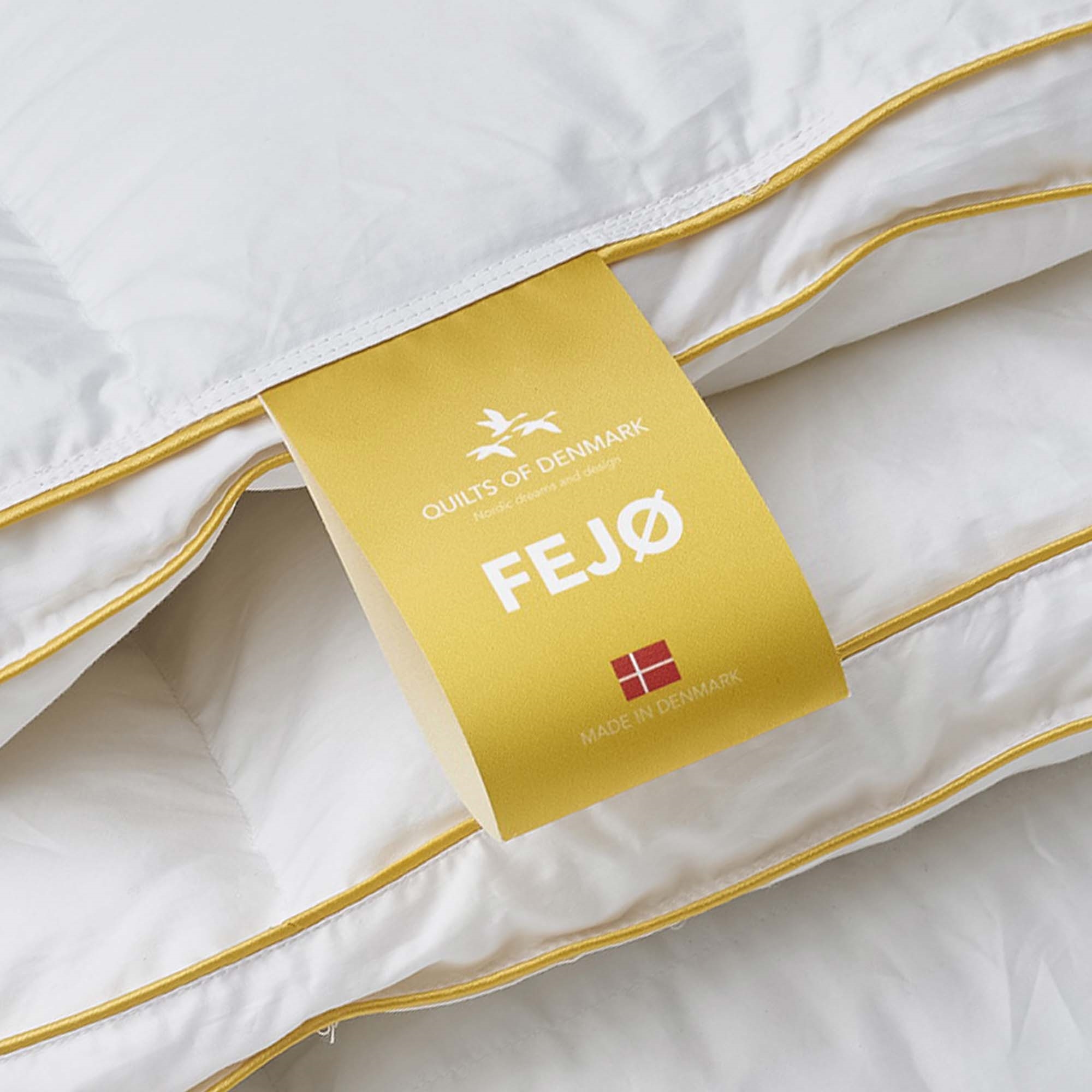 Framsidan »Täcken » Enkeltäcken » Extra långt täcke 140x220 cm Täcke 140x220 cm - Varmt helårstäcke - Quilts Of Denmark - Fejø täcket Spara50% Norvigroup 6.499,003.235,00SEKSpara 3.264,- Fri frakt på denna varaFåtal i lager Trustpilot Antal Lägg i varukorgen Se mer från: Norvigroup Artikelnummer:2055033 Läs vår täckesguide Läs om underhåll av täcken och kuddar Se vårt stora utbud av kuddar Har du frågor om produkten? Varmt helårstäcke - Fejø täcket - danskproduceratBärighet: Över 1190 % myskdun Storlek: 140x220 cm - Enkeltäcke med extra längd Typ: Varmt täcke helårs Fyllning: 90 % myskdun Varumärke: Quilts of Denmark - Fejø Tillverkat i: Danmark Bärighet: Över 11 (gammal mätmetod) Bärighet: 725 (ny mätmetod) Fyllnadsvikt: 660g Yttertyg: 100 % bomullssatin 80/80 (TC383 - extra fin och mjuk) Konstruktion: 5x7 kassettäcke med guld piping/kant Tvätt: 60° (Viktigt att använda Enzymfritt tvättmedel) Torktumling: Måste torktumlas med torkbollar Garanti: 10 år Certifiering: EN12934-normen - Klass 1 dun Certifiering: NOMITE - Fri från husdammskvalster Certifiering: DOWNAFRESH - 100 % rena dun Certifiering: Down pass - högsta djuretiska villkor Certifiering: STANDARD 100 by OEKO-TEX® (1176-194) Se alla våra kuddar från vår Ø-serie Fejø täcke - Ett dansktillverkat helårstäcke från danska Quilts of Denmark - ett exklusivt täcke tillverkat av den finaste satinvävda bomullen med fyllning av myskdun. Täcket är sytt med en 3 cm hög boxkant, vilket säkerställer att det mjuka och fylliga dunet fördelas jämnt i täcket och isolerar utan köldbryggor - ända ut till täckets kant. Boxkanten gör täckets isoleringsförmåga helt unik och ger fullt utnyttjande av värmen från dunet. Täcket framhävs ytterligare med en gyllene bandkant. Se vårt stora utbud av sängkläder i 140x220 cm här Kollektionen av de danska Ø-täckena är designad, utvecklad och producerad i Danmark med fokus på kvalitet, miljö och djurskydd. Quilts Of Denmark samarbetar med ett antal oberoende organisationer för att säkerställa kvaliteten och integriteten hos deras produkter. De små öarna ligger i olika vatten – från Nordsjön, där de grova vågorna rullar in och ibland når stormiga höjder, till de stilla fjordarna, vikarna och bukterna där frid, lugn och idyll råder. "Quilts of Denmark är högkvalitativa dunprodukter, tillverkade i Danmark av människor med äkta passion." Nordisk kvalitet utan kompromisser." Tillbaka till Extra långt täcke 140x220 cm