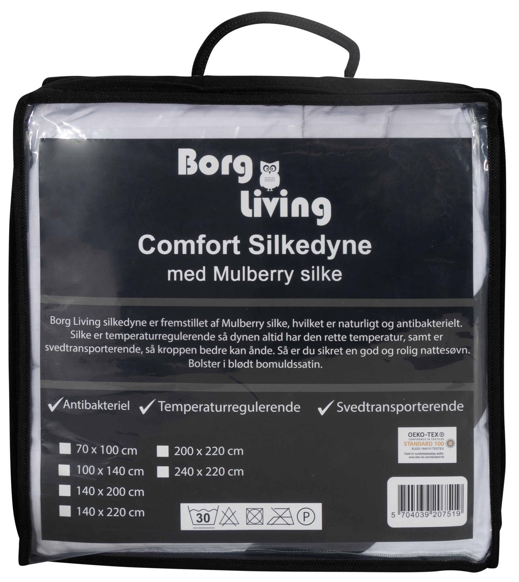 Framsidan »Inredning » Barnrummet » Täcke för baby 70x100 cm Täcke i silke för baby - Mullbärssilke - 70x100 cm - Temperaturreglerande helårstäcke för baby Spara50% Borg Living 999,00499,00SEKSpara 500,- I lager Trustpilot Antal Lägg i varukorgen Se mer från: Borg Living Artikelnummer:BL95 Läs vår täckesguide Läs om underhåll av täcken och kuddar Se vårt stora utbud av kuddar Har du frågor om produkten? Helårstäcke i silke för babyBorg Living Comfort100% mullbärssilkesfyllning Storlek: 70x100 cm - Täcke för baby Typ: Helårs silkestäcke för baby Varumärke: Borg Living - Comfort Silkestäthet: 325 g m² Fyllnadsvikt: 140 g Fyllning: 100 % Mullbärssilke Yttertyg: Bomullssatinrand - Mjuk och härlig Tvätt: 30° (Viktigt att använda enzymfritt tvättmedel) Allergivänlig: Ja Garanti: 5 år Levereras i exklusiv förvaringsväska Certifiering: STANDARD 100 by OEKO-TEX® (08. HCN. 60915) Se alla våra barnkuddar här Borg Living täcke i silke är tillverkat av mullbärssilke, vilket är naturligt och antibakteriellt. Silke är temperaturreglerande, så att täcket alltid har rätt temperatur, och svettavvisande, så att kroppen kan andas bättre. Yttertyget är i mjuk bomullssatin. Då är de små alltid garanterade en god och lugn nattsömn. Fördelar: Allergivänlig Antibakteriell Vätskeabsorberande och avledande Temperaturreglerande Andas Det danska varumärket Borg Living producerar exklusiva serier av täcken, kuddar och hemtextilier för ditt hem. Varumärket, som etablerades 2013, är känt för sin innovation inom kvalitet och design. Borg Livings fantastiska produkter bidrar till en optimal och skön nattsömn samt pryder ditt hem med moderna och stiliga inredningsdetaljer. Tillbaka till Täcke för baby 70x100 cm Du kanske också är intresserad av: Baby täcke i silke - 70x100 cm - Babysommartäcke - Nordic Comfort - Temperaturreglerande baby täckeSommartäcke - Nordic Comfort 70x100 cm silkestäcke sommar 100% rent mullbärssilkefyllning 1.199,00 SEK899,00 SEK