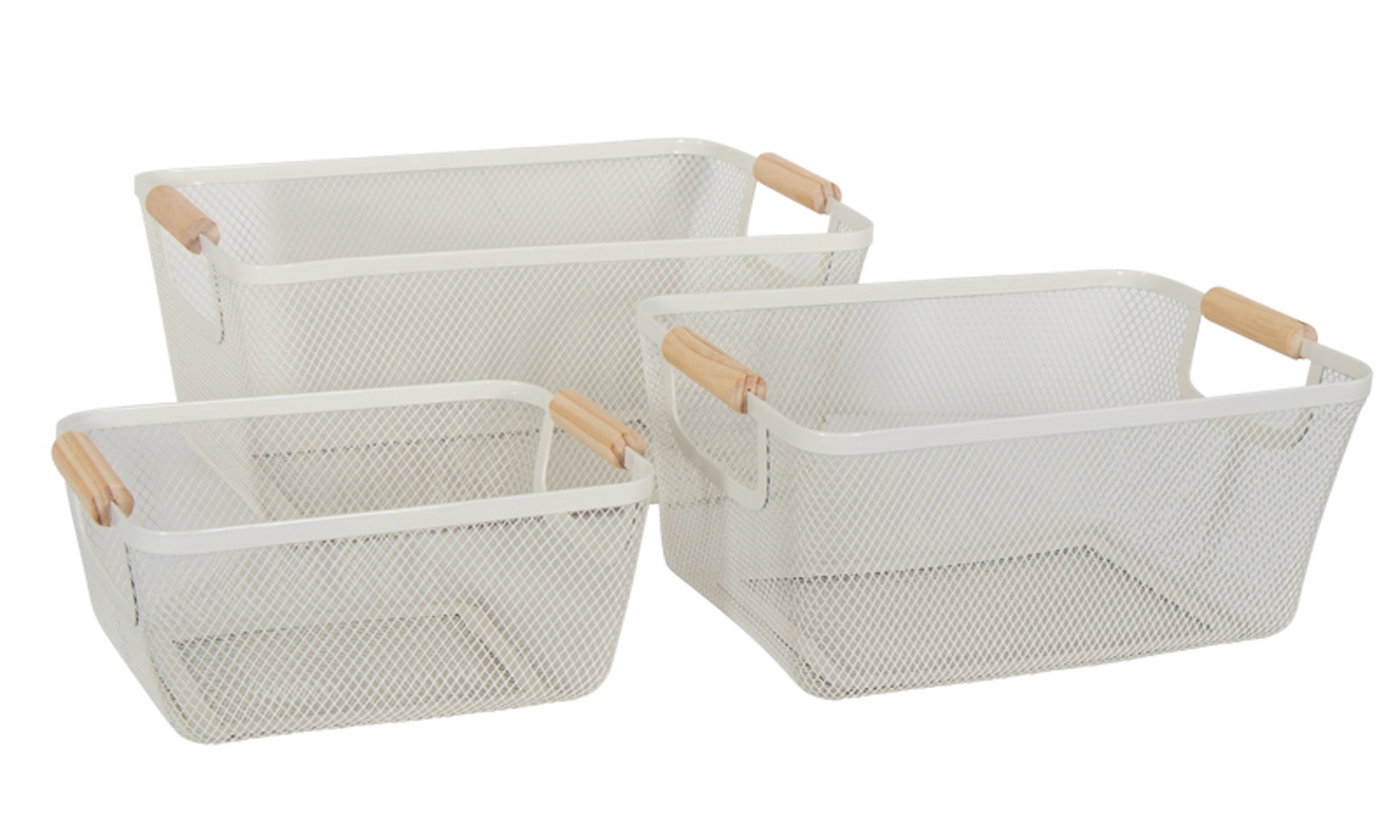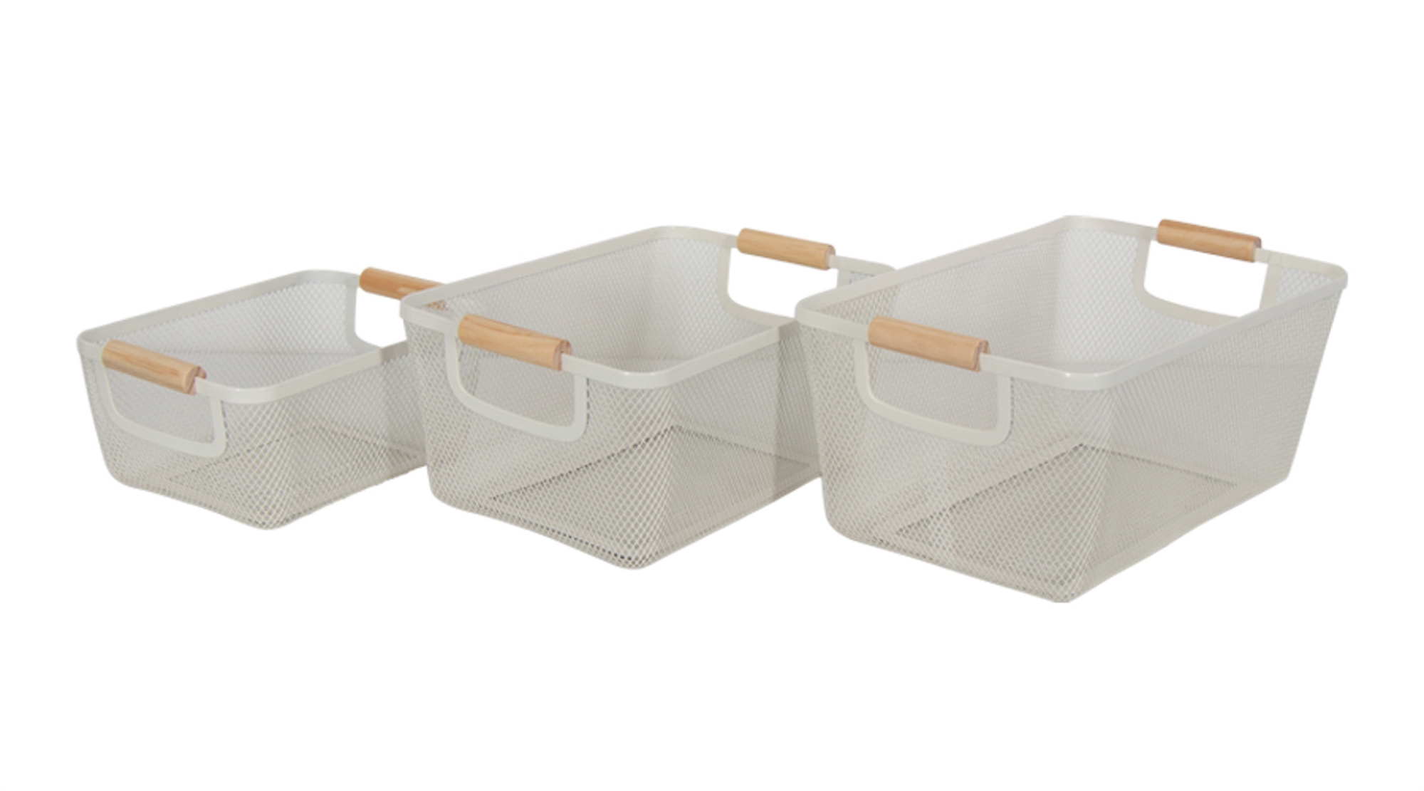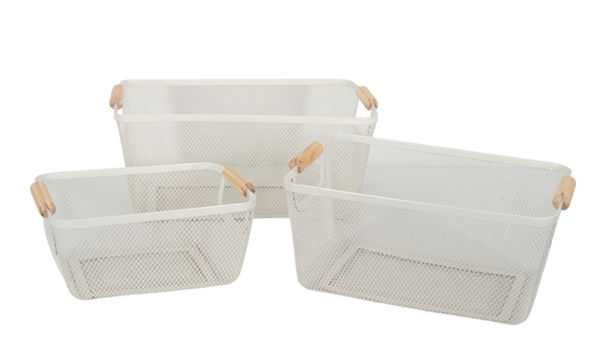 Framsidan »Inredning » Förvaring » Korg Trådkorgsset - 3 st. vita trådkorgar med trähandtag - Moderna förvaringskorgar Spara42% Home-tex 599,00349,00SEKSpara 250,- I lager Trustpilot Antal Lägg i varukorgen Se mer från: Home-tex Artikelnummer:PR780 Har du frågor om produkten? Praktiskt förvaringssetRobust trådstrukturModern och snygg design Material: Metall och trä Mått: Stor: 35x23x16 cm Mellan: 31x20x14 cm Liten: 24x17x11 cm Färg: Vit Trådkorgsset - En modern och funktionell lösning för förvaringVårt trådkorgsset är designat för att göra organiseringen enkel och snygg. Setet består av tre korgar i olika storlekar, vilket gör det möjligt att förvara flera typer av föremål. Trähandtagen ger en naturlig touch och gör det enkelt att flytta runt korgarna.Dessa korgar är inte bara praktiska, utan också snygga med sin vita färg och moderna trådstruktur. De är perfekta för förvaring av kontorsmaterial, badrumsprodukter eller andra småsaker, och bidrar till en organiserad och estetisk miljö i ditt hem.MetallMetall är ett hållbart och robust material som säkerställer att korgarna tål daglig användning. Den vita färgen ger en ren och modern känsla som passar in i de flesta hem. Metalltrådsstrukturen ger korgarna ett lätt och luftigt utseende samtidigt som innehållet är lätt att se.TrähandtagHandtagen i trä tillför ett naturligt inslag till korgarnas design och skapar en behaglig kontrast till det vita metallet. De gör korgarna lätta att flytta runt, vilket är praktiskt när du organiserar dina saker. Trä är också känt för sin hållbarhet, vilket säkerställer att handtagen tål regelbunden användning.För att se liknande produkter, ta en titt på kategorin Förvaring. Tillbaka till Korg