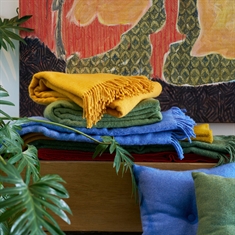 Det speciella med denna pläd är användningen av återvunnen ull, som kommer från överskottsmaterial i produktionen. Det betyder att varje pläd får sitt helt egna unika uttryck med naturliga variationer i färgen. Den gula nyansen tillför hemmet en mysig och inbjudande stämning och passar perfekt in i modern nordisk inredning.