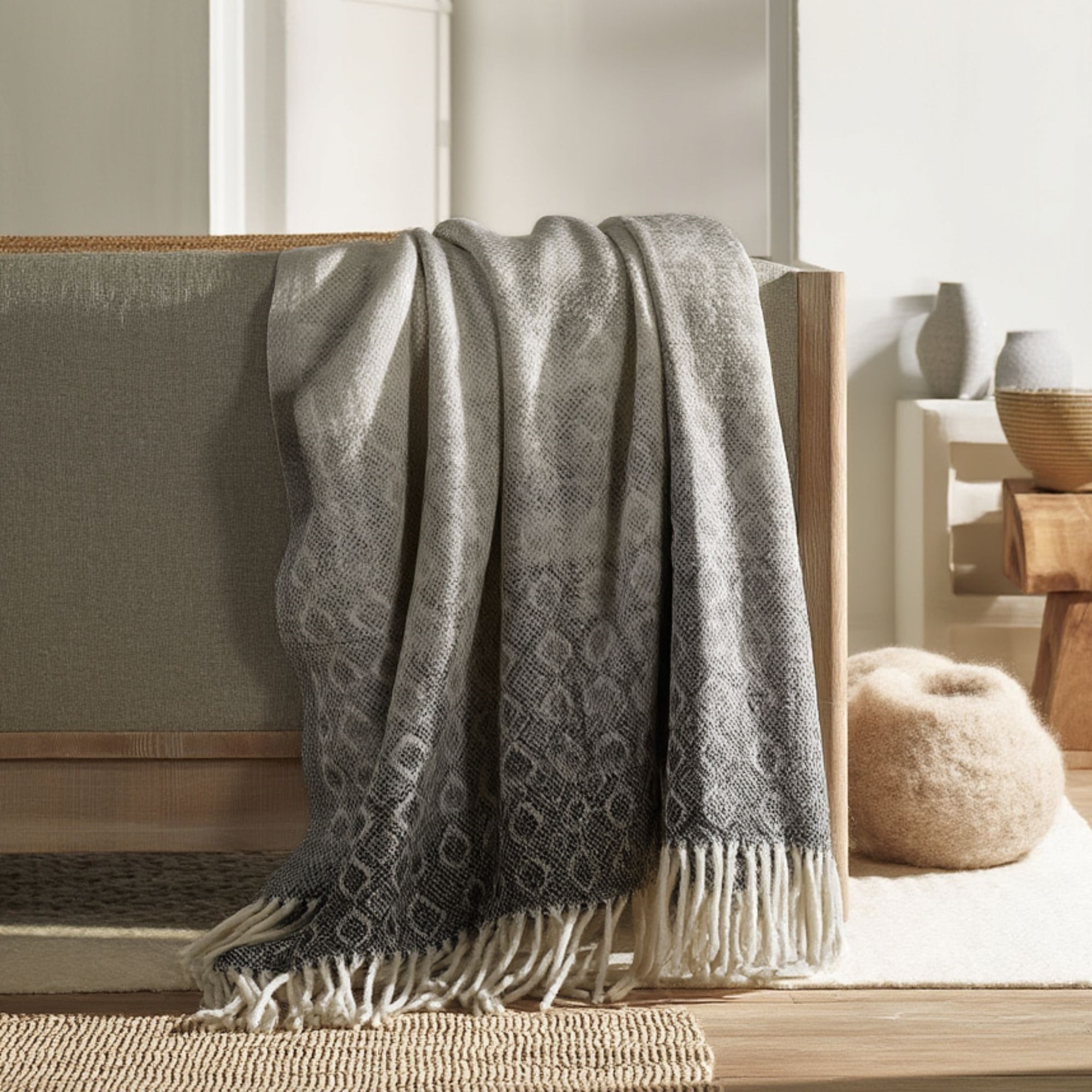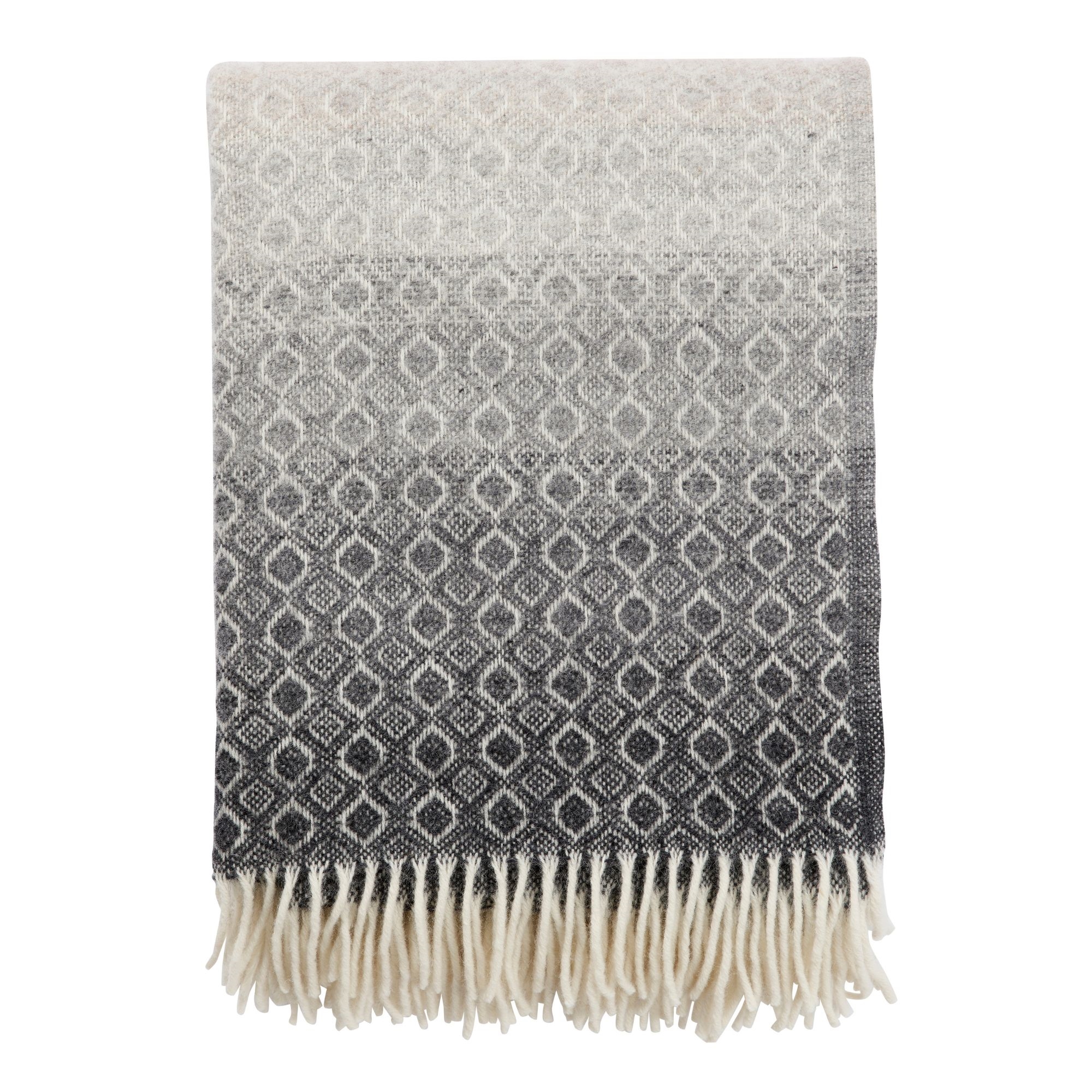 Det eleganta mönstret i flera grå nyanser skapar ett vackert och levande uttryck som tillför djup och karaktär till inredningen. Pläden passar perfekt i moderna skandinaviska hem och kan användas både som en praktisk filt och som en dekorativ detalj.
