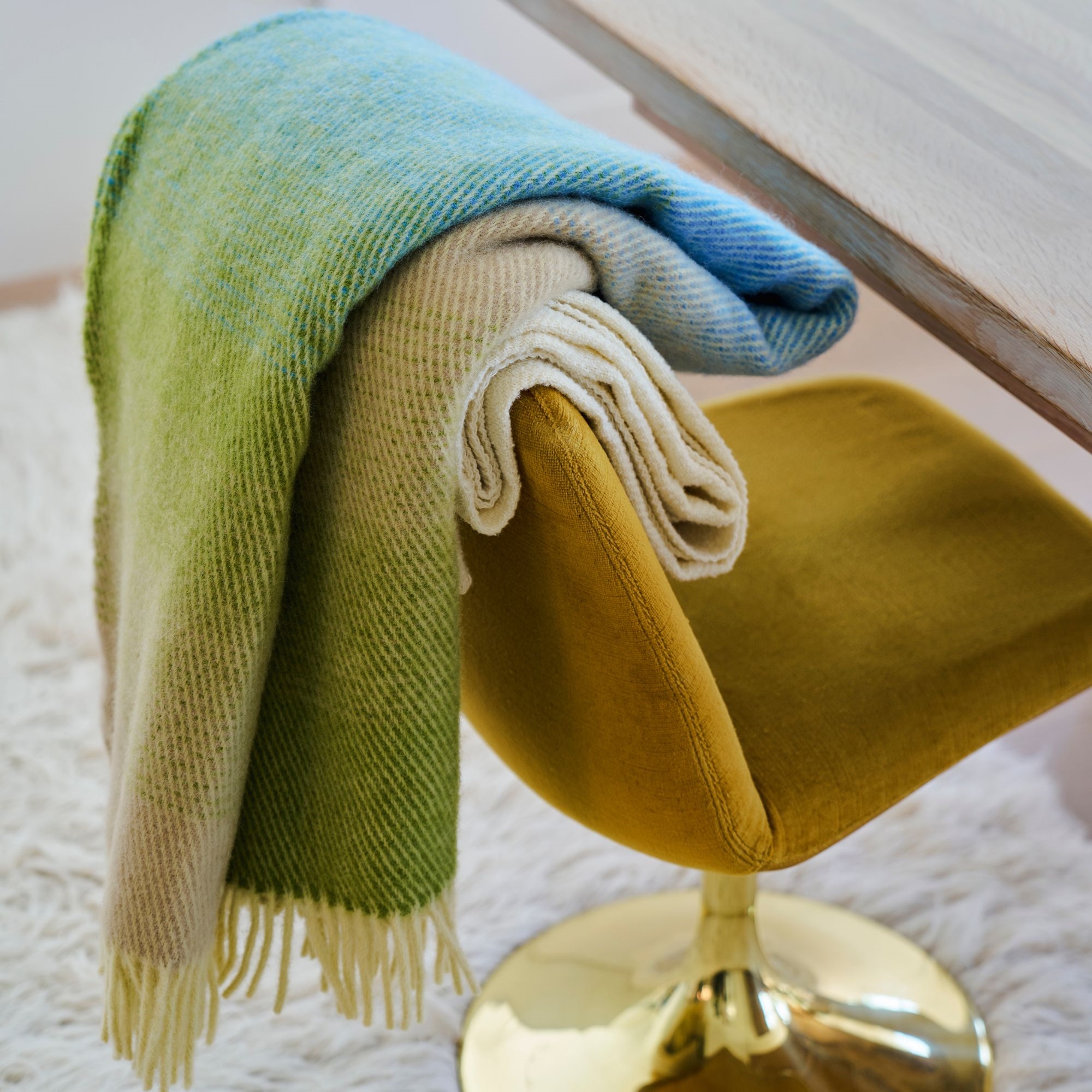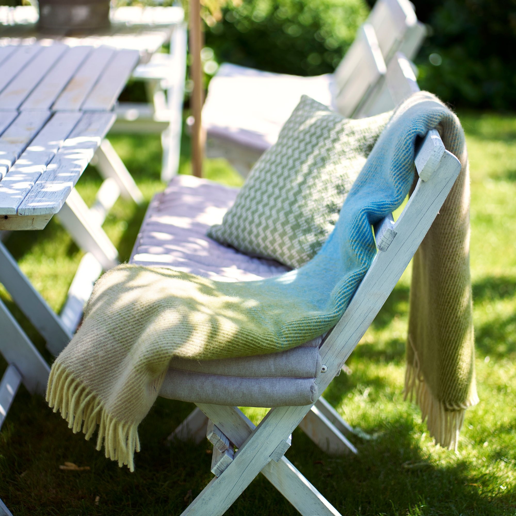 Ullpläd i grönt och blått - mjuk komfort i en färgstark design