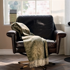 Det unika motivet tillför ett lekfullt och dekorativt element till inredningen, medan de gröna och bruna nyanserna skapar ett naturligt och harmoniskt uttryck. Pläden passar perfekt i modern nordisk inredningsstil och fungerar både som en funktionell filt och en vacker detalj.