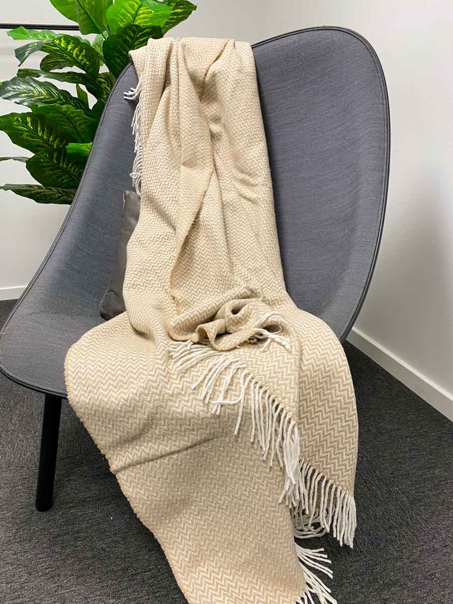 Framsidan »Inredning » Dekorationer » Plädar Ullpläd - Mjuk ullfilt - ZigZag sand - 130x200 cm - By Borg Spara56% By Borg 899,00399,00SEKSpara 500,- I lager Trustpilot Antal Lägg i varukorgen Se mer från: By Borg Artikelnummer:77015 Har du frågor om produkten? Mjukt och bekvämtLättsköttOEKO-TEX®-certifierad Storlek: 130x200 cm Typ: Ullpläd Färg: Sandfärgad Design: ZigZag sand Material: 50% ull och 50% fibrer Vikt: 350 g/m² Varumärke: Premium - By Borg Tvätt: Handtvätt med enzymfritt tvättmedel Torkning: Måste liggtorka Certifiering: STANDARD 100 by OEKO-TEX® (74773) Gör ditt hem ombonat med en mjuk ullpläd Denna ullfilt från By Borg är komfort och stil i ett. Med sin mjuka och härliga kvalitet ger den tillräcklig värme under alla årstider. Ullpläden är inte bara praktisk, utan med sin moderna och snygga design i sandfärgade nyanser ger den även en estetisk touch till ditt hem. Oavsett om du använder den som en mysig filt under en sval sommarkväll på terrassen eller som en varm pläd under en kall vinterdag i soffan, kommer denna ullfilt att tillföra en mysig och inbjudande atmosfär till ditt hem. Ull är ett naturligt och hållbart material, känt för sin förmåga att behålla värmen, även vid kalla temperaturer. Det är också andningsbart, vilket innebär att det kan hjälpa till att reglera kroppstemperaturen och förhindra överhettning. Ullens naturliga lanolinhalt ger pläden självrengörande egenskaper, vilket minskar behovet av frekvent tvätt. Om det ändå skulle bli nödvändigt att tvätta pläden ska den plantorkas. Hitta allt för inredningen här By Borg har med sina dansk producerade täcken och kuddar samt fantastiska sängkläder fokuserat på komfort och sömnoptimering. De vet att nyckeln till en bra vardag och hög livskvalitet är en optimal och god nattsömn. Därför har de gjort det enkelt för dig att hitta rätt sovkomponenter som passar just dina behov. Produkterna i denna serie erbjuder extremt hög kvalitet och noggrann certifiering. Tillbaka till Plädar