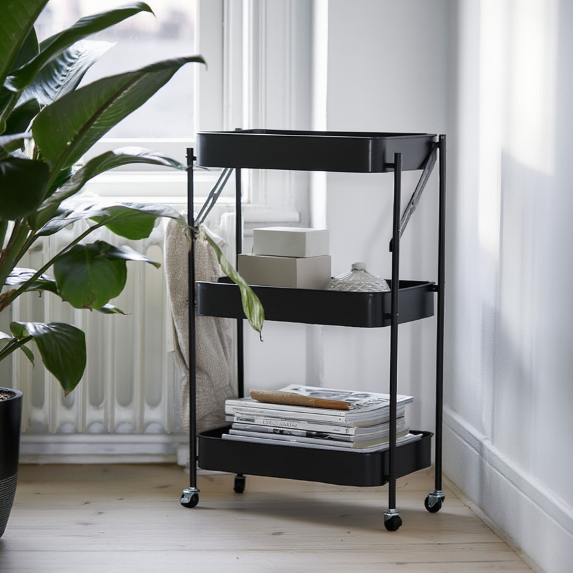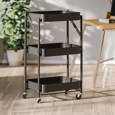 Framsidan »Inredning » Förvaring » Rullvagnar Vagn på hjul med 3 korgar - 78x45x30 cm - Svart metallvagn - Enkel förvaring Spara44% HOME-TEX 899,00499,00SEKSpara 400,- I lager Trustpilot Antal Lägg i varukorgen Se mer från: HOME-TEX Artikelnummer:PR787 Har du frågor om produkten? Praktisk och utrymmesbesparande designSolid svart metallstrukturLätt att flytta med fyra svängbara hjul Material: Metall Mått: 78x45x30 cm Korgmått: 40x29 cm Färg: Svart Hjul: 4 stycken svängbara hjul med låsfunktion Förvaringsvagn: Kombinerar funktionalitet och design Denna förvaringsvagn är både praktisk och snygg. Med sin solida svarta metallstruktur och tre rymliga korgar kan du enkelt organisera dina saker samtidigt som du ger ditt hem en modern touch. Den är inte bara platsbesparande utan också lätt att flytta tack vare sina fyra svängbara hjul. Detaljer Mått: 78x45x30 cm Korgmått: 40x29 cm Färg: Svart Metallmaterial Denna förvaringsvagn är gjord av solid svart metall, vilket ger den ett modernt och stilrent utseende samtidigt som den är robust och hållbar. Metallmaterialet ser till att vagnen tål daglig användning och att den håller i många år. Platsbesparande design Förvaringsvagnens design är inte bara estetiskt tilltalande, utan också platsbesparande. Dess kompakta storlek och möjligheten att fällas ihop gör den idealisk för mindre utrymmen eller när du behöver extra förvaringsutrymme. Fyra svängbara hjul Förvaringsvagnen är utrustad med fyra svängbara hjul, vilket gör den lätt att flytta runt. Två av hjulen har en låsfunktion som säkerställer stabilitet när vagnen är parkerad. Föreställ dig hur denna förvaringsvagn kan göra din vardag enklare. Med sina rymliga korgar och enkla rörlighet kan du hålla ditt hem organiserat och stilrent. Utforska möjligheterna idag. Du kan hitta flera liknande produkter i kategorin förvaring. Tillbaka till Rullvagnar