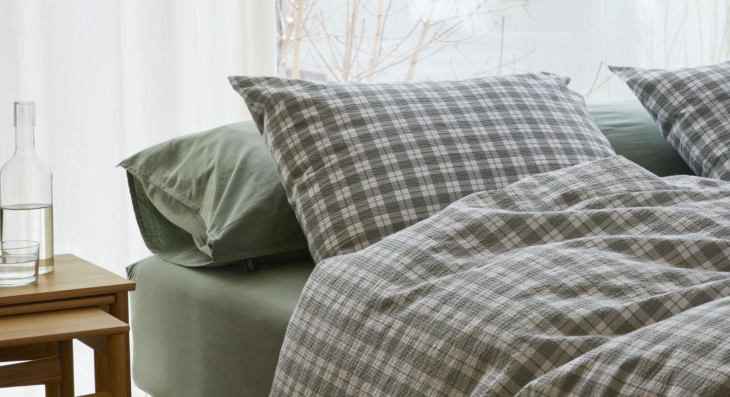 Framsidan »Sängkläder » Enkelt påslakanset » Enkelt påslakanset 140x200 cm Vävt krepp sänglinne 140x200 cm - 100% mjuk bomull - Grön med rutor - Kreppsängkläder - Kyrre Høie Of Scandinavia Spara40% Høie Of Scandinavia 999,00599,00SEKSpara 400,- I lager Trustpilot Antal Lägg i varukorgen Se mer från: Høie Of Scandinavia Artikelnummer:8341-1 Läs vår guide om sängkläder Se vårt stora utbud av lakan Har du frågor om produkten? OEKO-TEX® certifieratMjukt, lätt och luftigtExklusivt luftigt vävt krepp Påslakan: 140x200 cm Örngott: 1 st. á 60x63 cm Material: 100% mjuk bomull - Vävt krepp Vävning: 200TC Kreppsängkläder (Trådtäthet = antal trådar per kvadrattum) Färg: Grön med rutor Design: Kyrre dämpad grön Märke: Høie of Scandinavia Stängning: Påslakan med dragkedja, örngott med överlapp Tvätt: 60° Torktumling: Ja Strykning: Nej Certifiering: STANDARD 100 by OEKO-TEX® (19.HIN.85821). Din garanti för att produkten är fri från hälsofarlig kemi. De extra fina bomullstrådarna skapar en delikat kreppväv. Perfekt för dig som älskar den mjuka och prassliga känslan. I vävt bomullskrepp i 100% bomull bildas de unika luftfickorna i väven. Kreppväven är varm på vintern och sval på sommaren, och ger en mjuk och krispig känsla av krepp tvätt efter tvätt. En klassiker som inte behöver strykas. Detta rutiga Kyrre sänglinne är tillverkat av 100% mjuk bomull med vävmetoden Kreppsängkläder, även kallad bomullskrepp. Denna väv ger skrynkeeffekten och skapar håligheter för små luftfickor i materialet, vilket gör att sängkläderna känns lätta, luftiga och ofta svalare än andra materialtyper. På sommaren kommer sängkläderna att kännas luftiga, och på vintern kommer du att känna värmen från den mjuka bomullen, vilket är en unik fördel som denna fina kombination av material och vävning ger. Sängsetet bör inte strykas, eftersom det har sina luftfickor i själva väven. Sänglinne med denna vävtyp är särskilt bra för dig som ibland upplever att du har det varmt på natten, här kan sängkläderna tillföra ökad andningsförmåga och hög absorberingsförmåga. Köp lätta örngott till dina extra kuddar här Fräscha upp sängen och sovrummet med ett snyggt och läckert set sängkläder som detta. Passa samtidigt på att säkerställa maximal sovkomfort genom att tillföra ett nytt mjukt lakan av hög kvalitet. Du hittar vårt stora sortiment av kvalitetslakan här Høie är ett skandinaviskt varumärke som står för tradition förenat med nytänkande. Företaget har funnits sedan 1850 och har genom åren varit med och format och utvecklat skandinavisk textil och design. Sängkläder från Høie är vardagslyx som alla förtjänar. Tillbaka till Enkelt påslakanset 140x200 cm