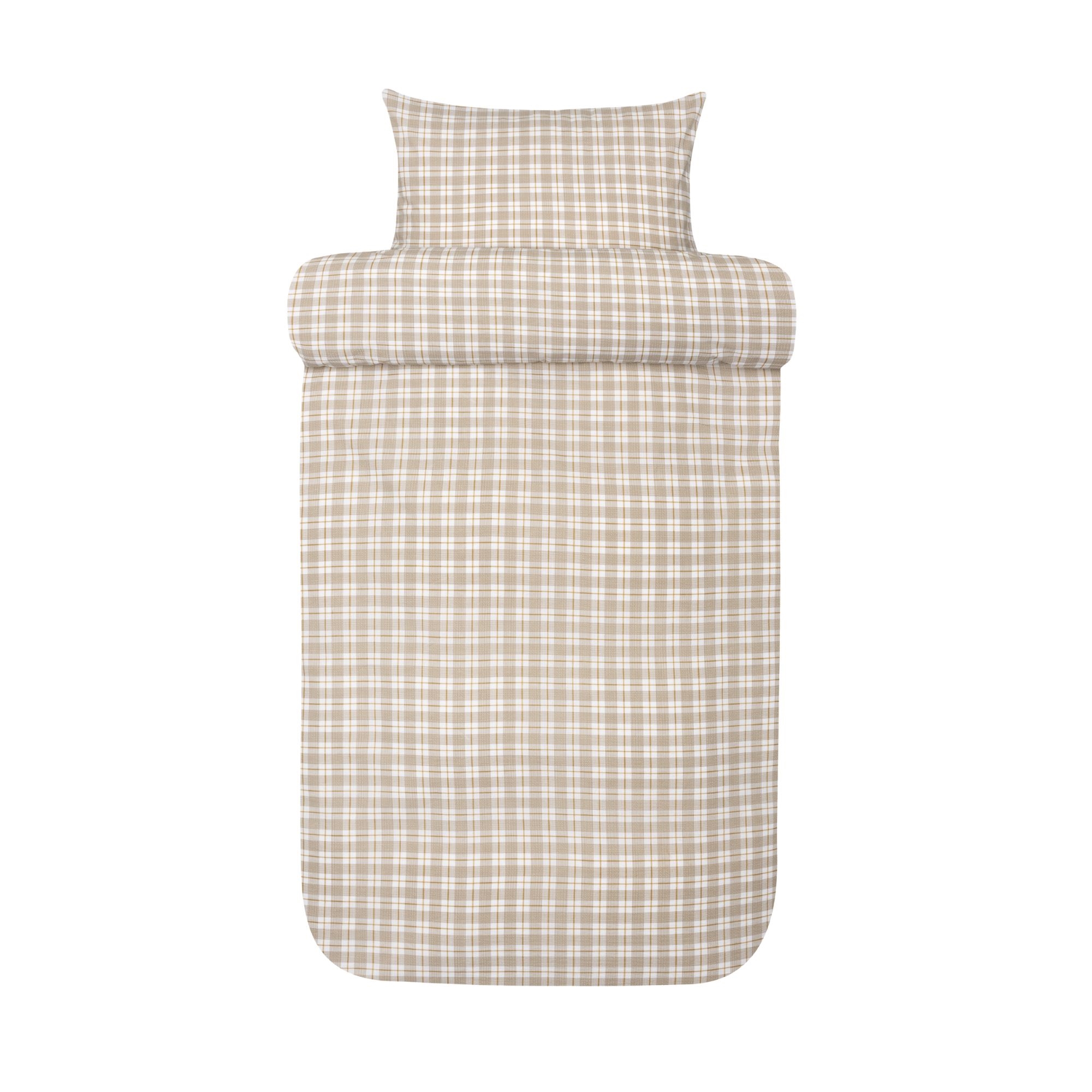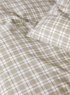 Framsidan »Sängkläder » Enkelt påslakanset » Extra långa sängkläder 140x220 cm Vävt krepp sänglinne 140x220 cm - 100% mjuk bomull - Beige med rutor - Kreppsängkläder - Kyrre Høie Of Scandinavia Spara36% Høie Of Scandinavia 1.099,00699,00SEKSpara 400,- I lager Trustpilot Antal Lägg i varukorgen Se mer från: Høie Of Scandinavia Artikelnummer:8346-2 Läs vår sänglinnesguide Se vårt stora utbud av lakan Har du frågor om produkten? OEKO-TEX® certifieratMjukt, lätt och luftigtExklusivt luftig vävd krepp Påslakan: 140x220 cm Örngott: 1 st. á 60x63 cm Material: 100% mjuk bomull - Vävd krepp Vävning: 200TC Kreppsängkläder (Thread count = antal trådar per kvadrattum) Färg: Beige med rutor Design: Kyrre beige Märke: Høie of Scandinavia Stängning: Påslakan med dragkedja, örngott med överlapp Tvätt: 60° Torktumling: Ja Strykning: Nej Certifiering: STANDARD 100 by OEKO-TEX® (19.HIN.85821). Din garanti för att produkten är fri från hälsofarliga kemikalier. De extra fina bomullstrådarna skapar en delikat kreppväv. Perfekt för dig som älskar den mjuka och knapriga känslan. I vävd bomullskrepp i 100% bomull skapas de unika luftfickorna i väven. Kreppvävningen är varm på vintern och sval på sommaren, och ger en mjuk och spröd känsla av krepp tvätt efter tvätt. En klassiker som inte behöver strykas. Detta rutig Kyrre sänglinne är producerat av 100% mjuk bomull med vävningsmetoden Kreppsängkläder, även kallad bomullskrepp. Denna vävning ger rynkeffekten och skapar luftfickor i materialet, vilket gör att sängkläderna känns lätta, luftiga och ofta svalare än andra typer av material. På sommaren kommer sänglinet att kännas luftigt, och på vintern kommer du att känna värmen från den mjuka bomullen, vilket är en unik fördel som denna kombination av material och vävning ger. Sättet bör inte strykas, då det har sina luftfickor i själva väven. Sängkläder med denna vävningstyp är särskilt bra för dig som ibland upplever att du har det varmt på natten; här kan sänglinet tillföra ökad andningsförmåga och hög absorption. Köp enkelt örngott till dina extra kuddar här Fräscha upp sängen och sovrummet med ett fint och härligt set sänglinne som detta. Passa samtidigt på att säkra maximal sovkomfort genom att lägga till ett nytt mjukt lakan av hög kvalitet. Du hittar vårt stora sortiment av kvalitetslakan här Høie är ett skandinaviskt varumärke som står för tradition förenad med nytänkande. Företaget har funnits sedan 1850 och har genom åren varit med och format och utvecklat skandinavisk textil och design. Sänglinne från Høie är vardagslyx som alla förtjänar. Tillbaka till Extra långa sängkläder 140x220 cm