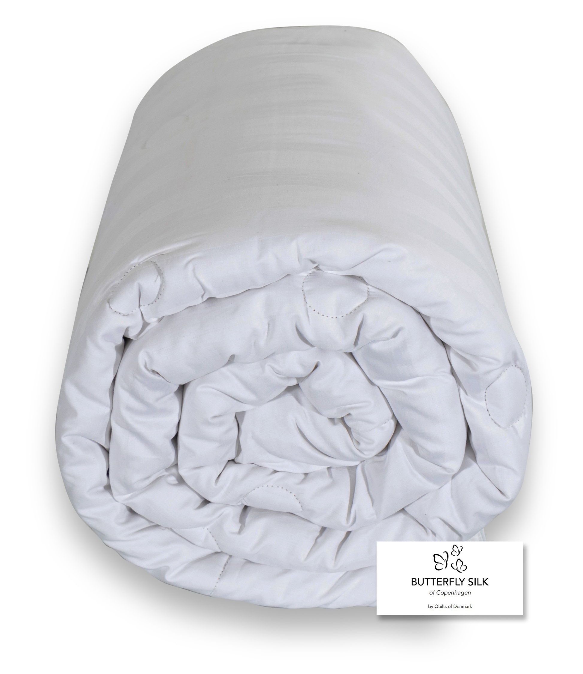 Framsidan »Täcken » Typ av täcke » Silkestäcken Varmt täcke i silke - 140x200 cm - Butterfly Silk - Varmt täcke med 100 % mulberry-silke Spara25% Butterfly Silk 2.499,001.885,00SEKSpara 614,- Fri frakt på denna varaI lager Trustpilot Antal Lägg i varukorgen Se mer från: Butterfly Silk Artikelnummer:1111034 Läs vår täckesguide Läs om underhåll av täcken och kuddar Se vårt stora utbud av kuddar Har du frågor om produkten? Täcke i silke - Varmt täckeFrån: Butterfly Silk100 % mullbärssilke Storlek: 140x200 cm Typ: Vintersilkestäcke Varumärke: Butterfly silk silkestäcke Silkestäthet: 500g m² Fyllnadsvikt: 1400g Fyllning: 100 % mulberry (morbär) silke Yttertyg: 100 % mjuk randig bomullscambric Tvätt: Endast professionell rengöring Allergivänlig: Ja Garanti: 10 år Certifiering: STANDARD 100 by OEKO-TEX® (1176-194DTI) Levereras i en exklusiv förvaringsväska Se alla våra silkeskuddar här Det finns många dokumenterade fördelar med silke! Allergivänlig Anti-bakteriell Fuktabsorberande Temperaturreglerande och avledande Detta vinter täcke i silke har ett yttertyg av 100 % randig bomullskambric. Vi rekommenderar Butterfly Silk till dig som vill ha originaltäcket i silke. Här får du mest ut av sidens fantastiska egenskaper till ett bra pris. Om du har tendenser att känna dig varm om natten är detta täcke i silke ett bra val. De fint vävda silkestrådarna gör att kroppen enkelt kan bli av med överskottsvärme och säkerställer en behaglig temperatur hela natten. Se vårt stora utbud av sängkläder i 140x200 cm här Täcken i silke är temperaturreglerande, mycket fuktabsorberande och allergivänliga. Täcket är fyllt med 100 % mullbärssilke. Mullbärssilke anses vara den bästa typen av silke för tillverkning av täcken. Butterfly Silk är ett danskt varumärke med ett stort urval av de finaste silkesprodukterna. täcken i silke finns i många varianter, alla med 100% mullbärssilkefyllning, så det finns ett täcke som passar dig perfekt. Oavsett om det är ett vanligt täcke i silke, ett lyxigt täcke i silke eller den extra andningsbara bambu-/silkeserien, så hittar du det hos Butterfly Silk. Silkeprodukterna i vårt sortiment är tillverkade av 100 % morbärssilke, och själva tillverkningsprocessen sker utan kemikalier. Detta säkerställer att produkterna håller absolut högsta kvalitet och inte innehåller skadliga ämnen. Därför är silkeprodukter idealiska för både barn och vuxna med allergi. Tillbaka till Silkestäcken Du kanske också är intresserad av: Silkestäcke 140x200 cm - Helårstäcke med 100 % långfibrigt mullbärssilke - Nordic Comfort täckeSilkestäcke - Superior silke Från: Nordic Comfort 100 % långfibrigt mullbärssilke Rekommenderat försäljningspris : 3.913,00 Spara : 914,00 4.299,00 SEK2.999,00 SEK Täcke i silke 140x200 cm - Helårstäcke med yttertyg i silke - Nordic Comfort 100% långfibrigt mullbärssilkeTäcke i silke - Excellence silk Från: Nordic Comfort Handgjort - Långfibrigt mullbärssilke + yttertyg i silke 8.999,00 SEK4.899,00 SEK Sidenkudde - 60x63 cm "Medium" kudde - Standard Silk - Nordic ComfortSilkeskudde Medium - Standardsilke Nordic Comfort Fiber + SilkFX Mullbärssilke 999,00 SEK599,00 SEK
