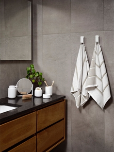 Framsidan »Oversættelse færdig Vit handduk - 50x100 cm - Zone Denmark Zone Bra pris:249,00SEK I lager Trustpilot Antal Lägg i varukorgen Se mer från: Zone Artikelnummer:37608-3 Se vårt stora utbud av badrumsmattor för golvet Se vårt utbud av handdukspaket Se vårt stora utbud av badrockar för hela familjen Har du frågor om produkten? Typ: HanddukStorlek: 50x100 cmFärg: VitMaterial: 100% bomull/600 gTvätt: 60°Torktumling: Ja Certifiering: STANDARD 100 by OEKO-TEX® (2668CIT CITEVE) Sauna är namnet – och ränderna talar för sig själva. Serien är inspirerad av de strama linjerna i en klassisk träklädd bastu, där designen elegant leker med perspektiv och färgbalans. Varje sida av handduken framhäver sin egen dominerande färg - en fin detalj som ger dig två olika uttryck i en och samma handduk.De retroinspirerade ränderna tillför ett grafiskt, urbant uttryck, och med en mjuk, tung kvalitet i garnfärgad 600 grams bomull känns handduken lika härlig som den ser ut.Välj mellan 50 x 100 och 70 x 140 cm – och låt Sauna sätta sitt grafiska, färgglada avtryck i ditt badrum. Tillbaka till Oversættelse færdig
